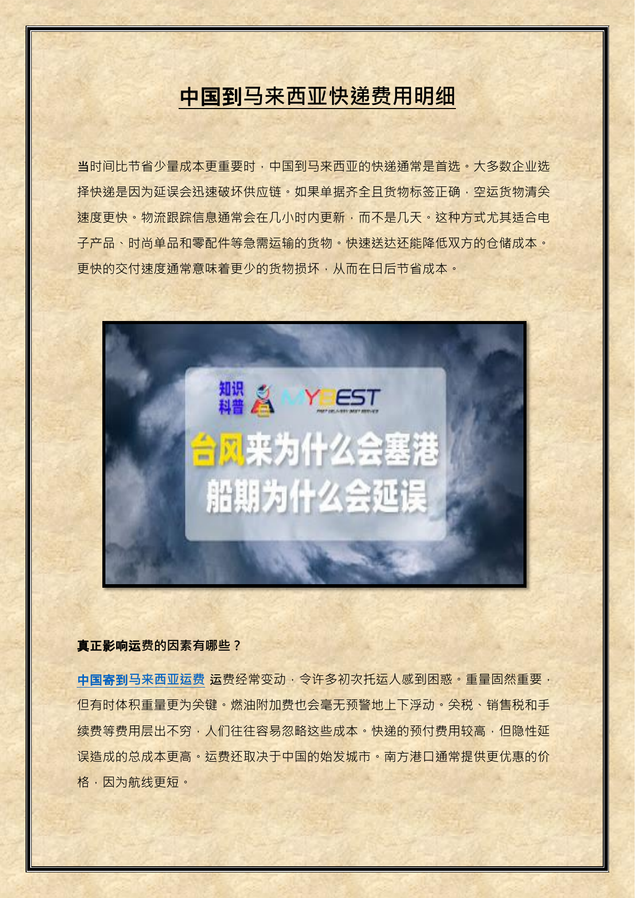 中国寄到马来西亚运费 费经常变动,令许多初次托运人感到困惑。重量固然重要,