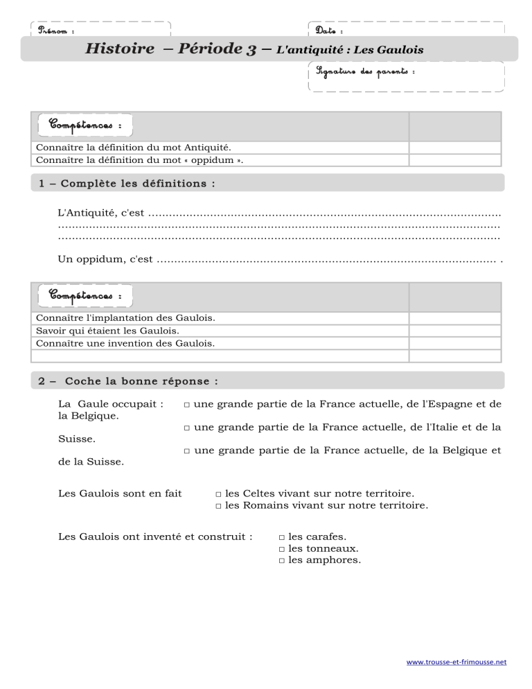 Histoire – Période 3 – L'antiquité : Les Gaulois