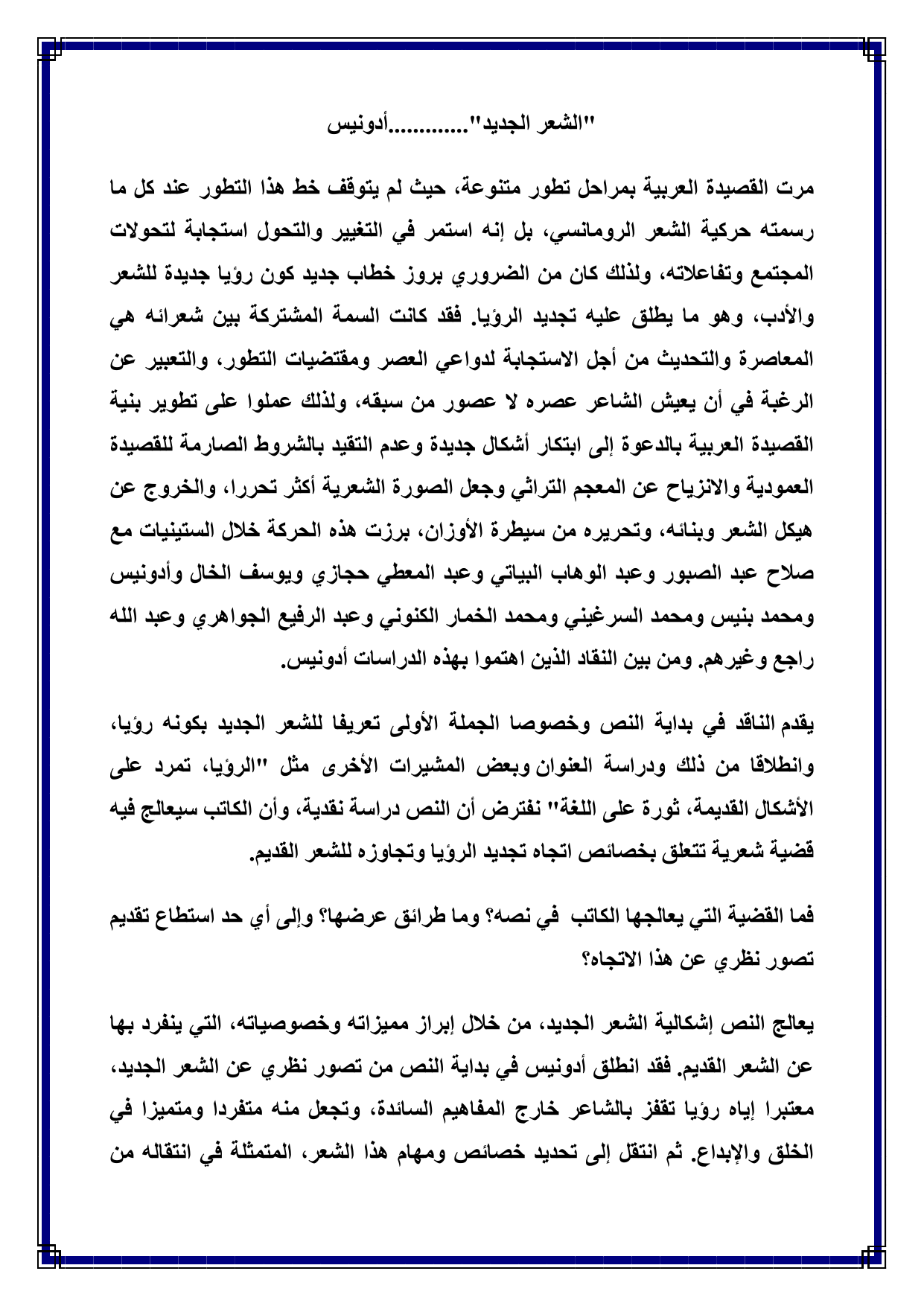 ) ﻢﻳﺪﻘﻟﺍ ﺮﻌﺸﻟﺍﻭ ﺪﻳﺪﺠﻟﺍ ﺮﻌﺸﻟﺍ ﻦﻴﺑ ﺔﻧﺭﺎﻘﻣ ﺪﻘﻌﻴﻟ ﻦﻴﻔﻳﺮﻌﺘﻟﺍ ﻦﻳﺬﻫ ﻦﻣ ﻖﻠﻄﻧﺍ ﺎﻤﻛ ،(...ﺓﺪﺋﺎﺴﻟﺍ