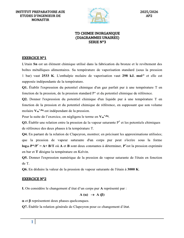 TD Chimie Inorganique: Unary Diagrams Series 3