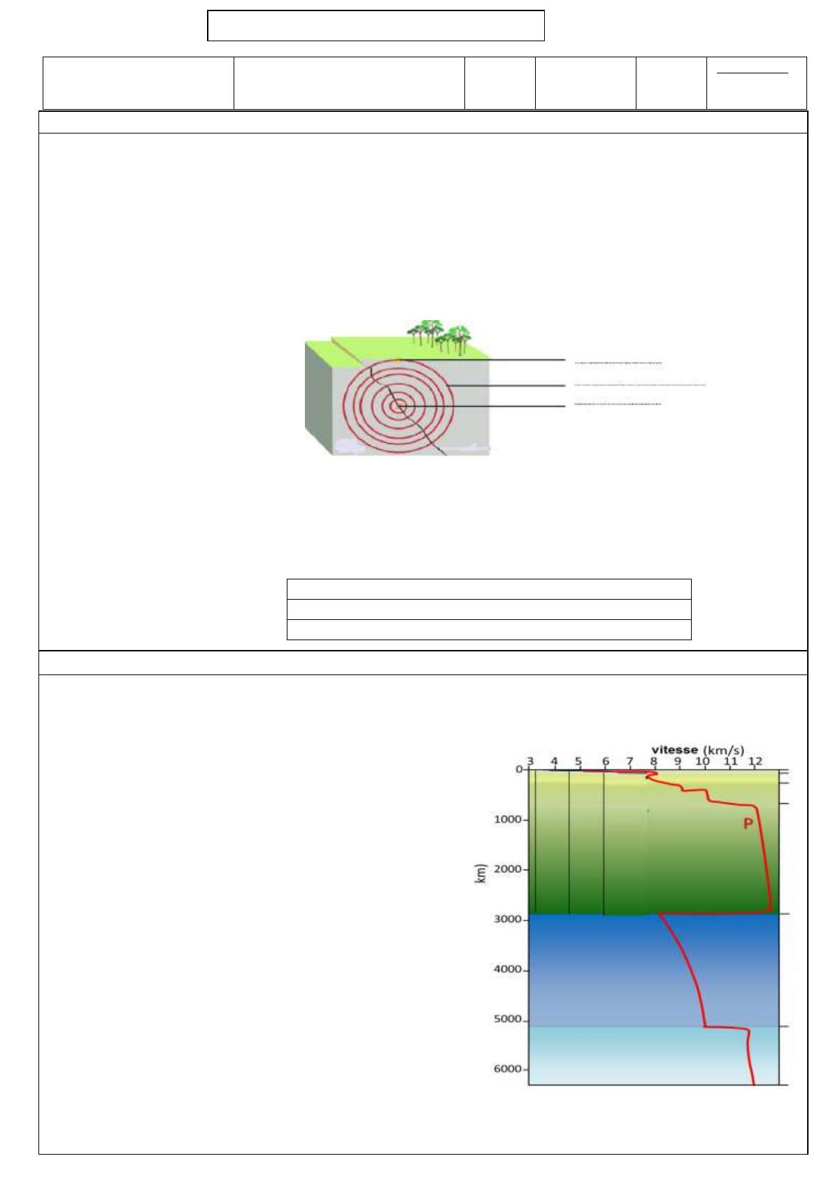 Le document ci-dessous représente la variation de la vitesse des ondes sismiques P en fonction de la profondeur du