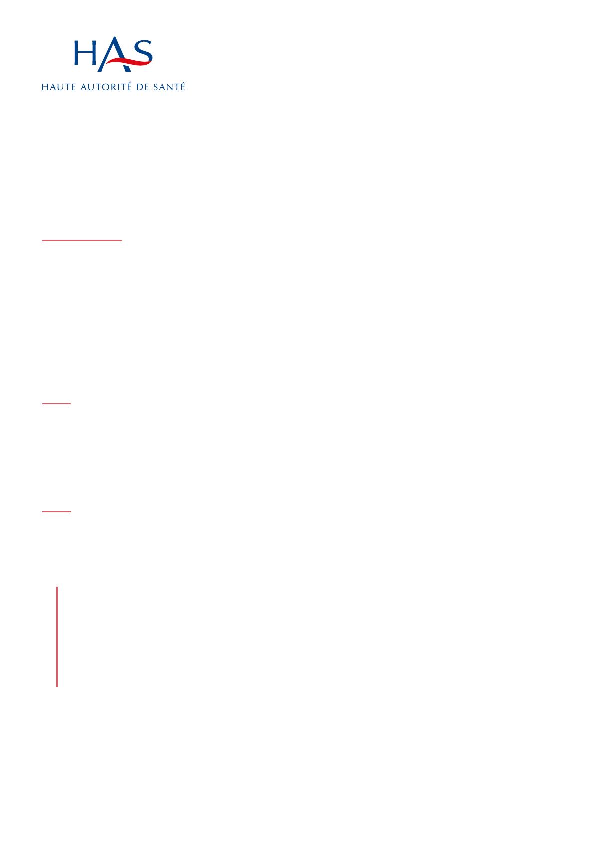 Ce document a été élaboré par la HAS et relu par des membres du groupe de travail du