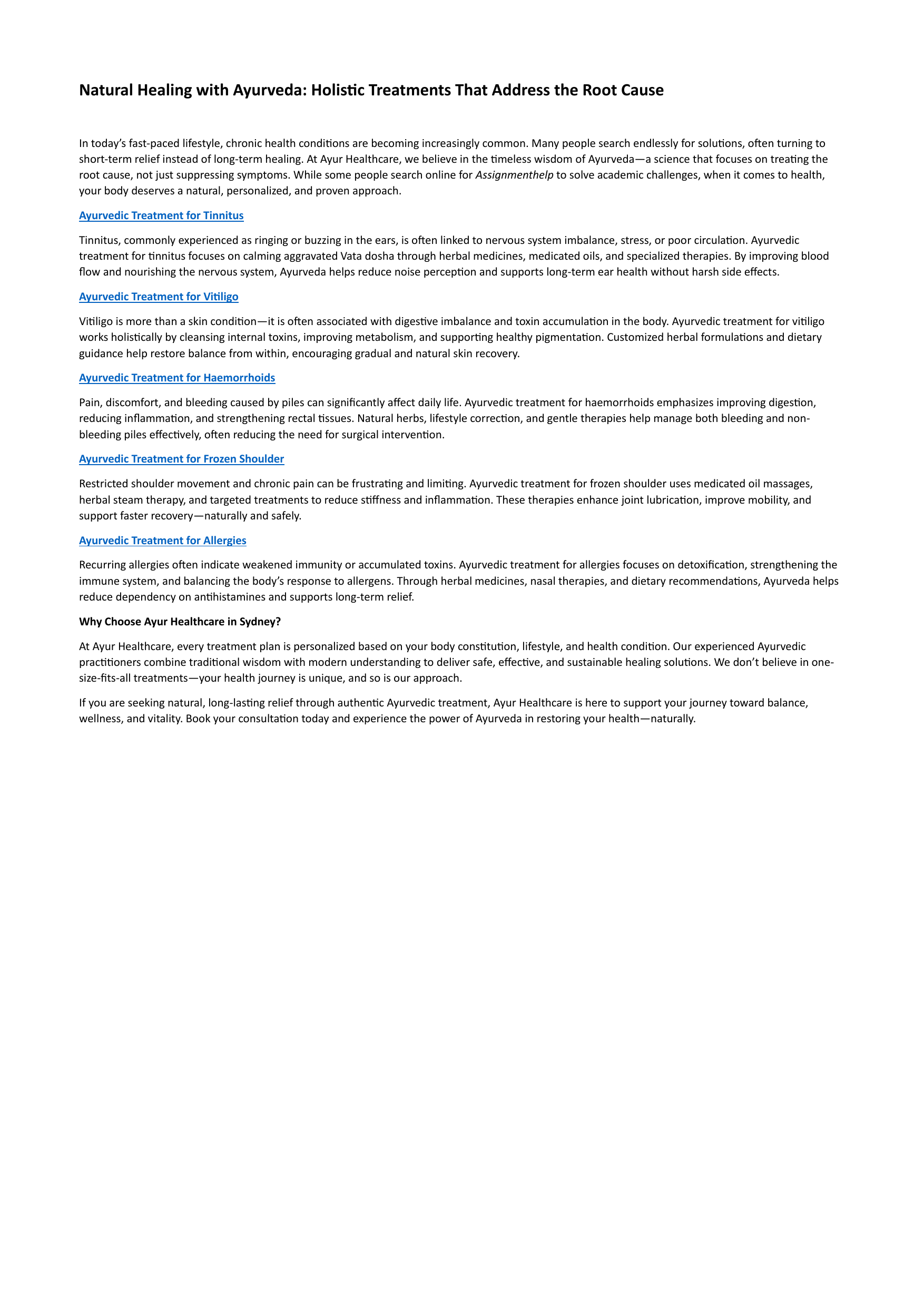 If you are seeking natural, long-lasng relief through authenc Ayurvedic treatment, Ayur Healthcare is here to support your journey toward balance,