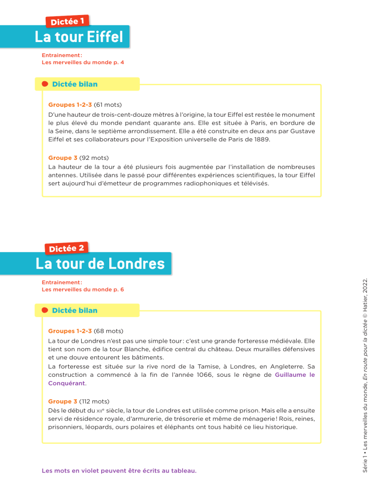 Série 1 • Les merveilles du monde, En route pour la dictée © Hatier, 2022.