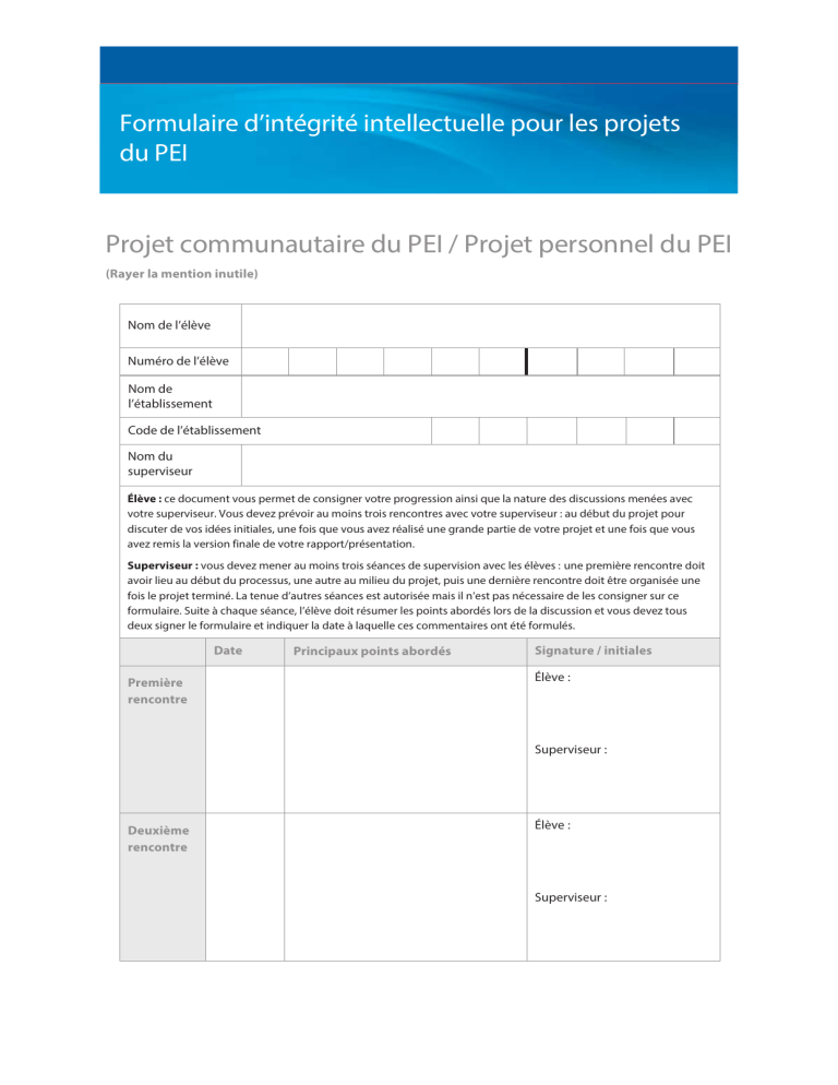 fois le projet terminé. La tenue d’autres séances est autorisée mais il n’est pas nécessaire de les consigner sur ce