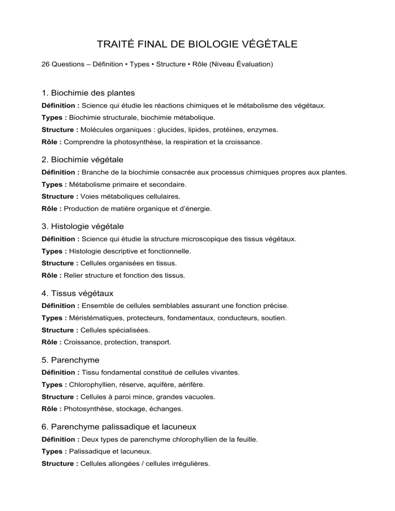 Rôle : Photosynthèse, respiration, transpiration.