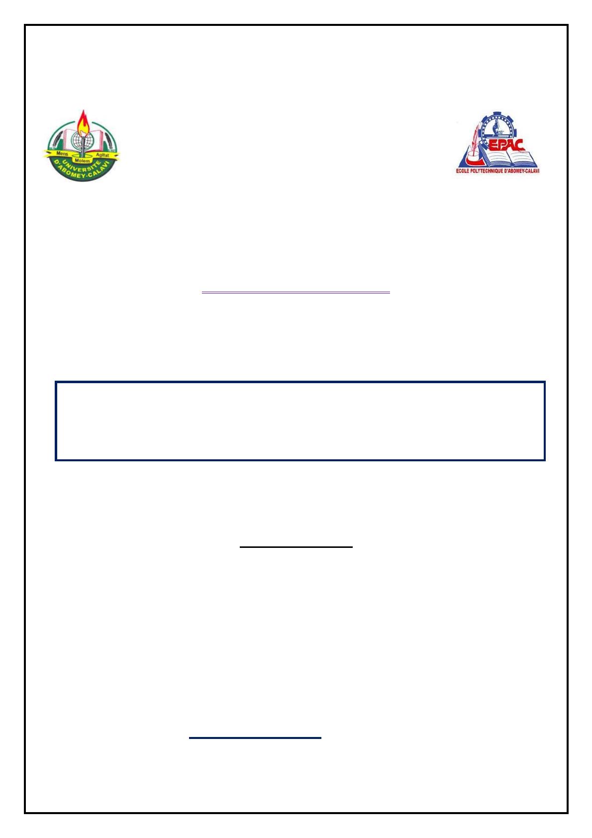 Ce support de cours se décompose en 5 chapitres. Dans le premier chapitre on retrouve une