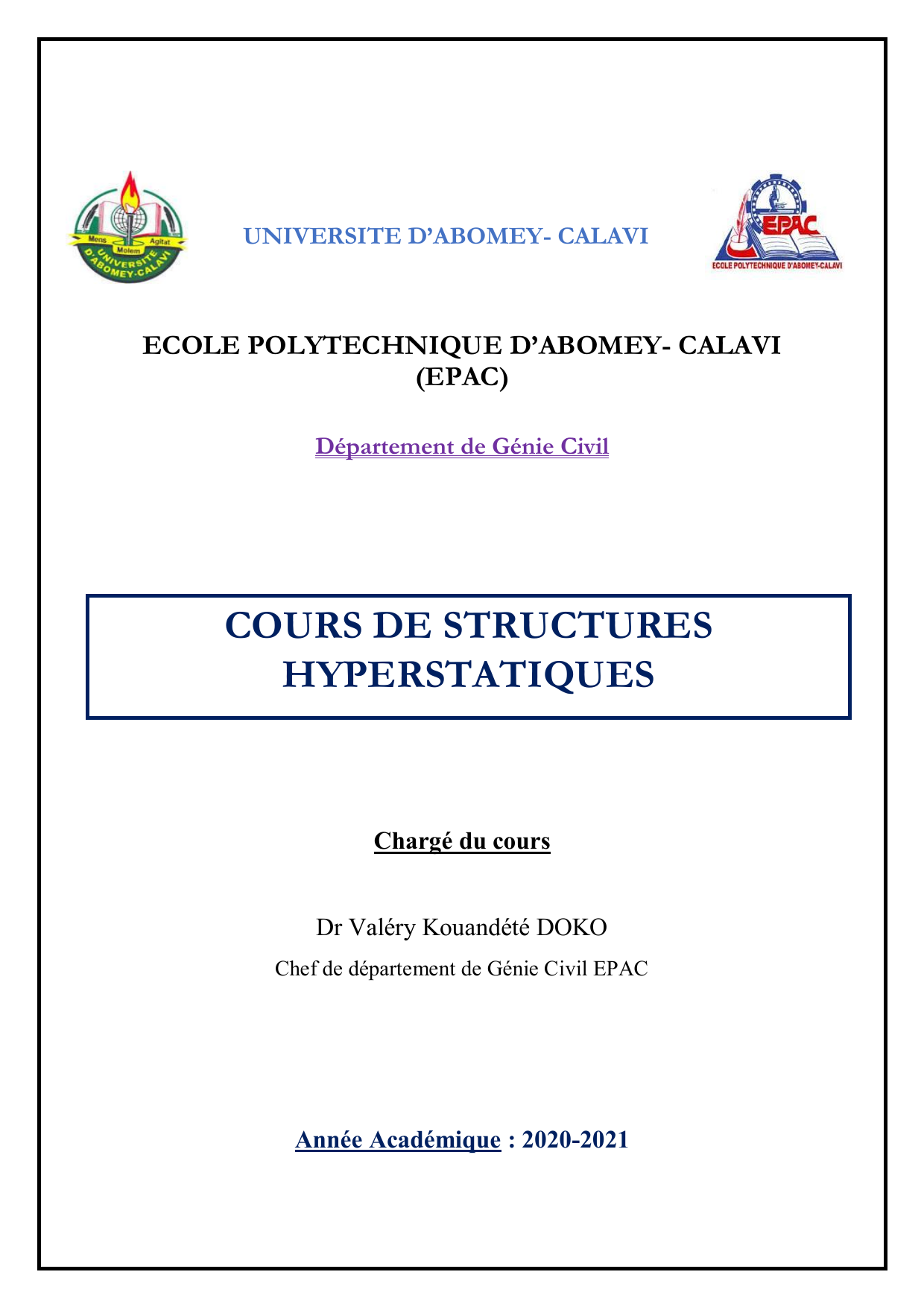 Dans ce cours, l’intérêt est porté sur les méthodes de calcul de structures hyperstatiques. Il est