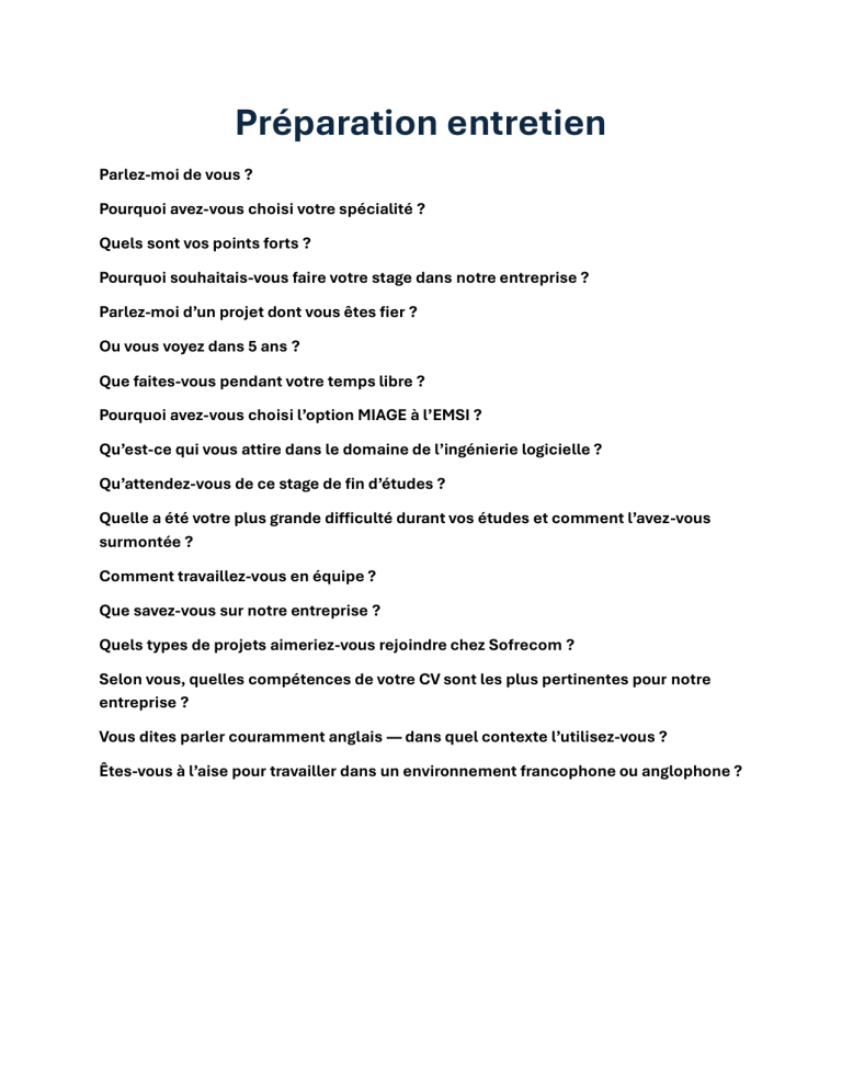 Pourquoi souhaitais-vous faire votre stage dans notre entreprise ?