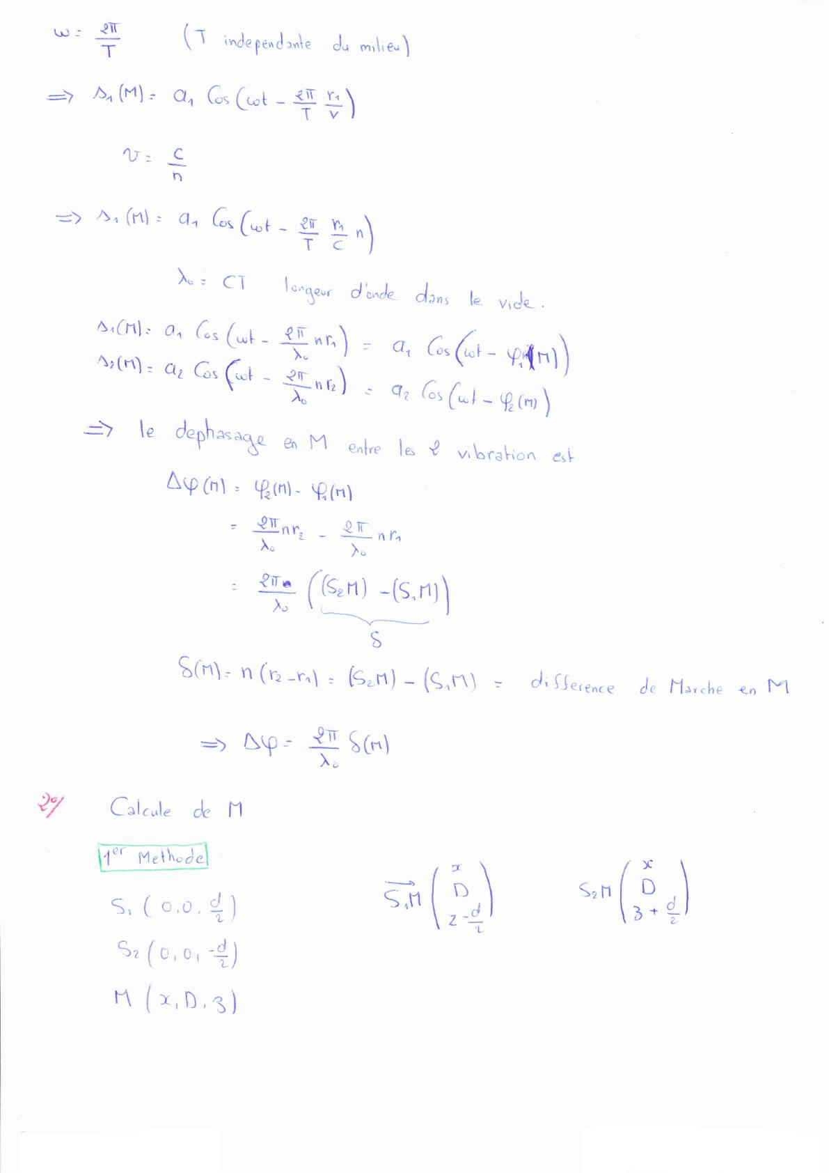 2- Calculer la différ€nce de marche ô (au point M) en fonction de n, d, D et z.