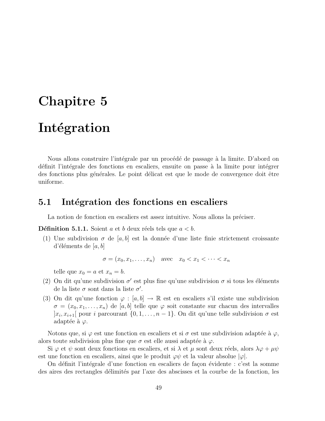 D´efinition 5.2.2. On dit qu’une fonction f: [a, b]→Rest r´egl´ee s’il existe une suite de