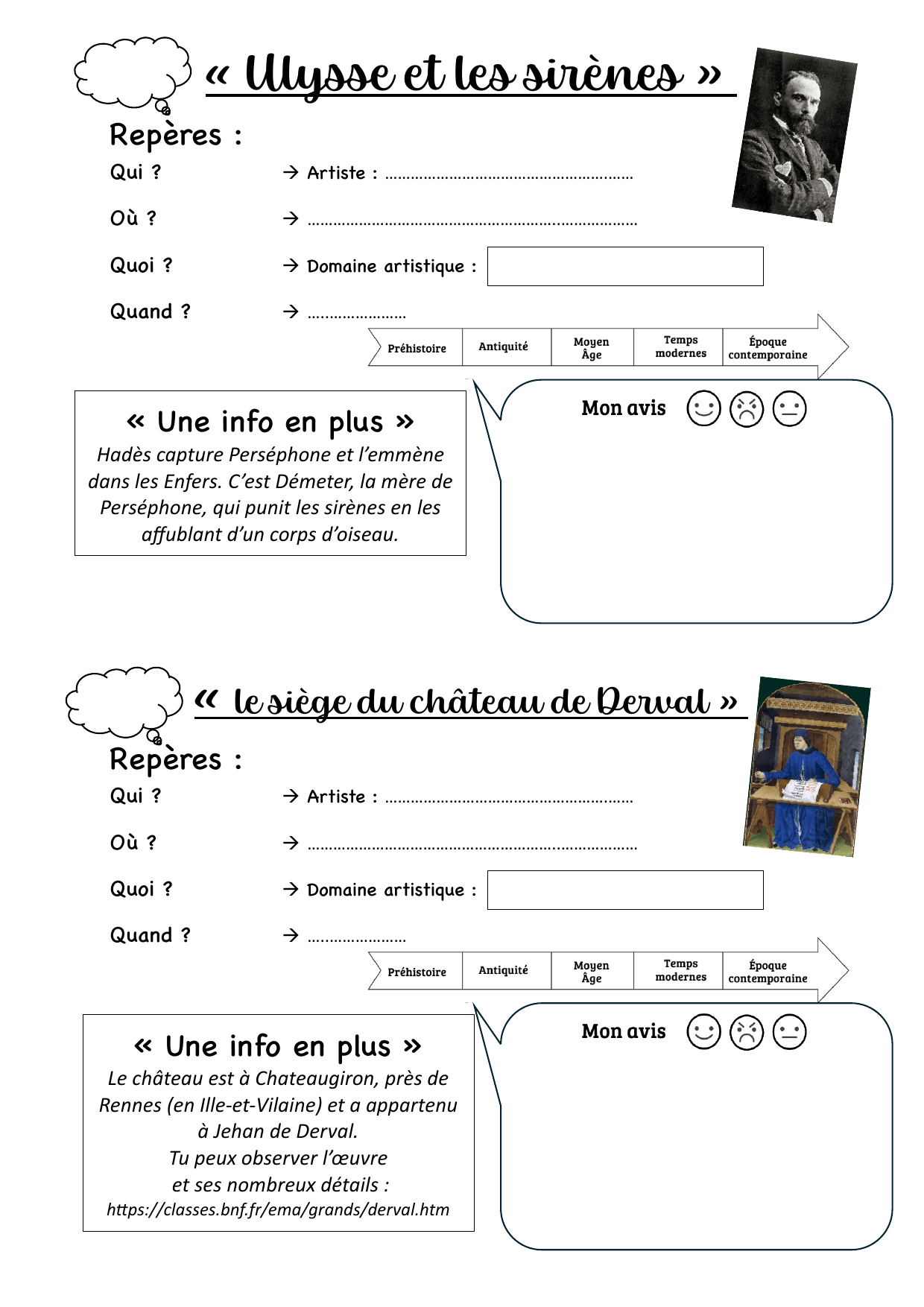 + fiche suivi de l’œuvre avec repères + une info en plus