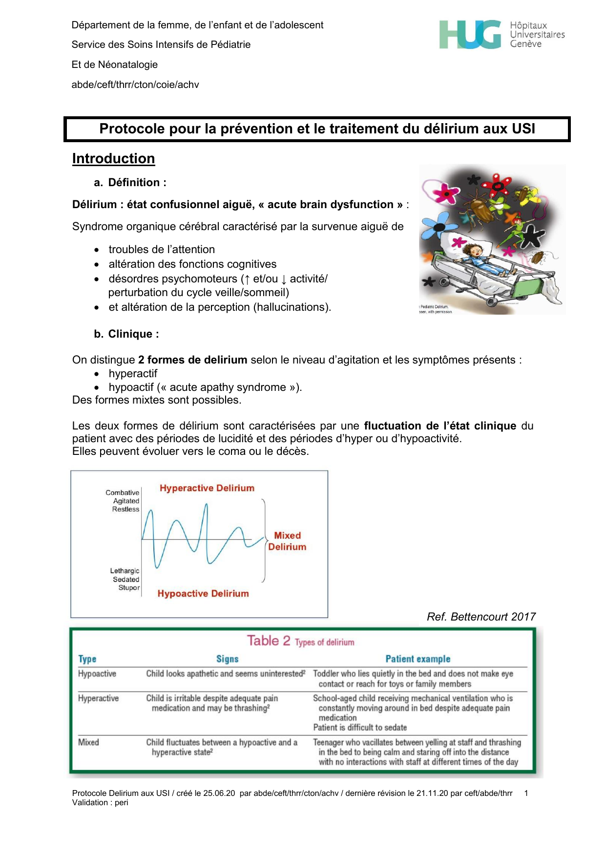 Protocole Delirium aux USI / créé le 25.06.20 par abde/ceft/thrr/cton/achv / dernière révision le 21.11.20 par ceft/abde/thrr 2