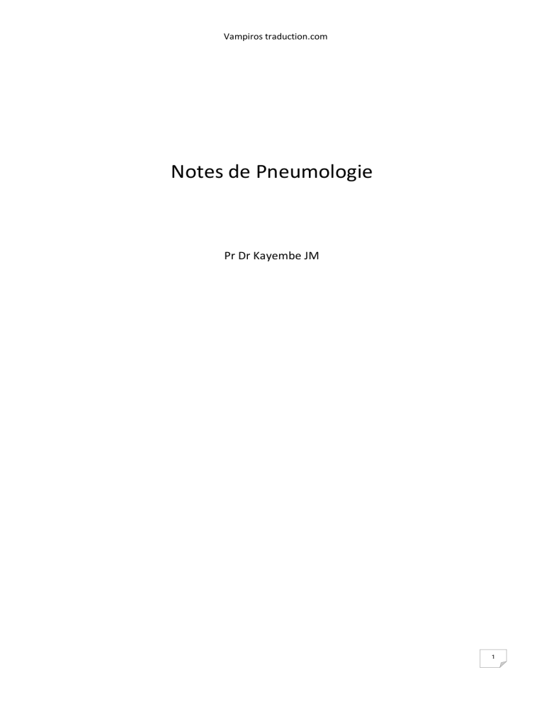 Notes de Pneumologie - Cours Complet de Médecine Respiratoire