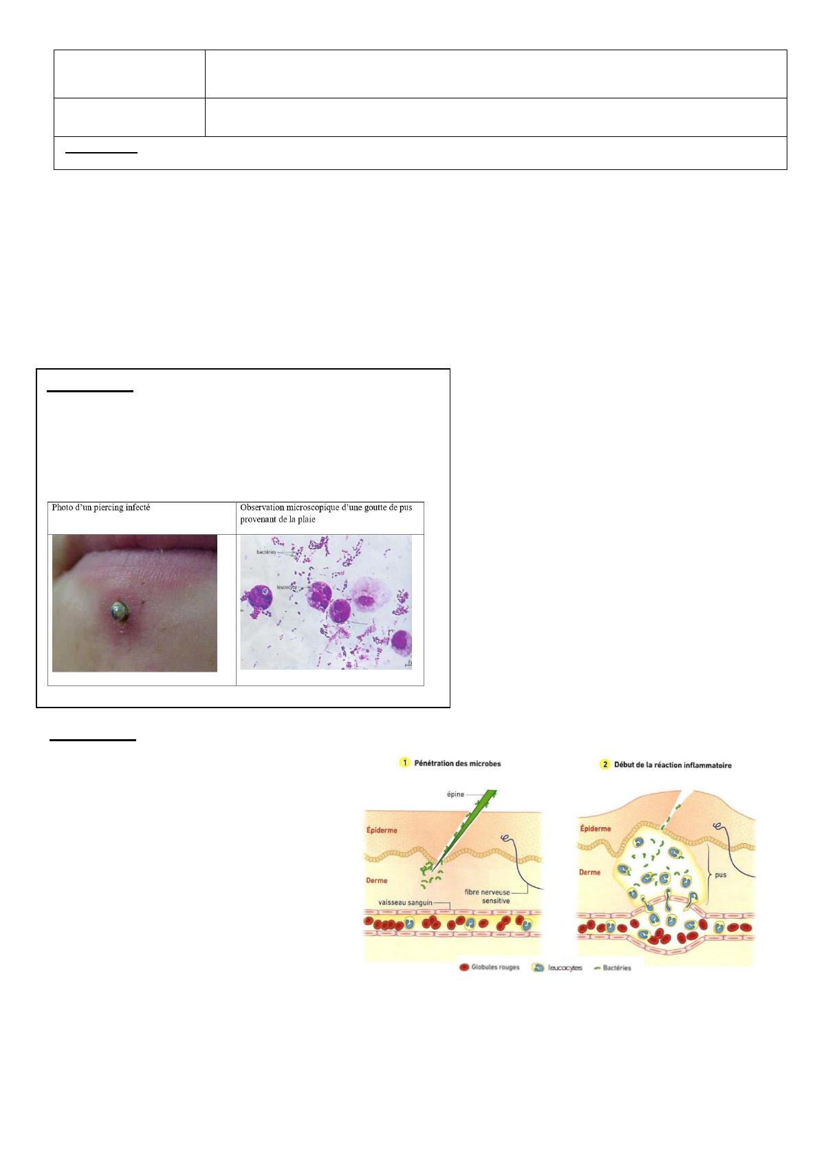 1. A partir des documents, définir la réaction inflammatoire en donnant les 4 signes de cette réaction.