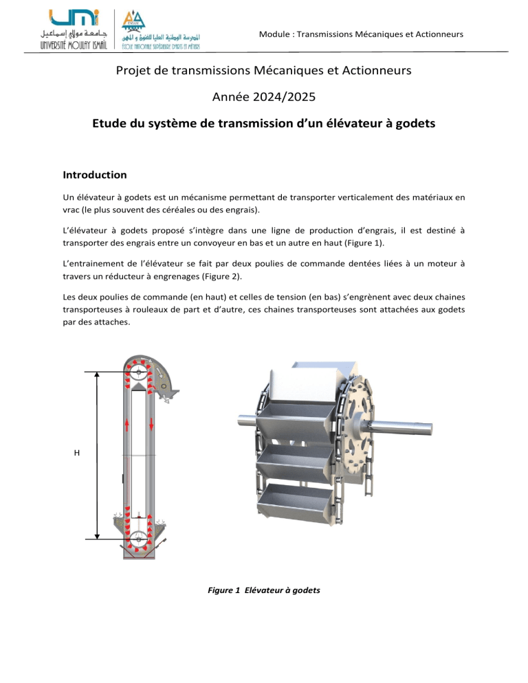 puissance du moteur et le calcul préliminaire des arbres et des engrenages doivent se faire