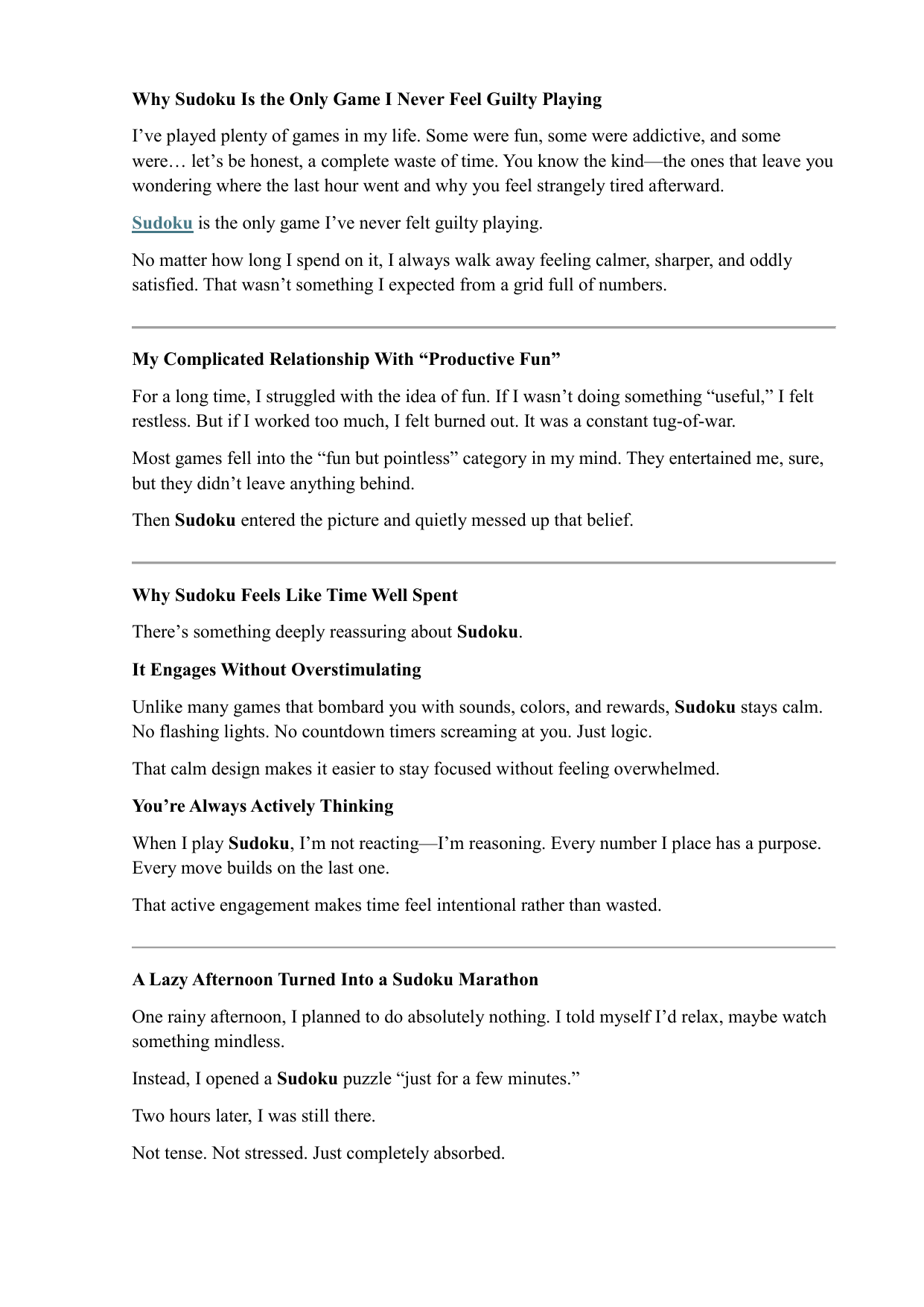 Why Sudoku Is the Only Game I Never Feel Guilty Playing