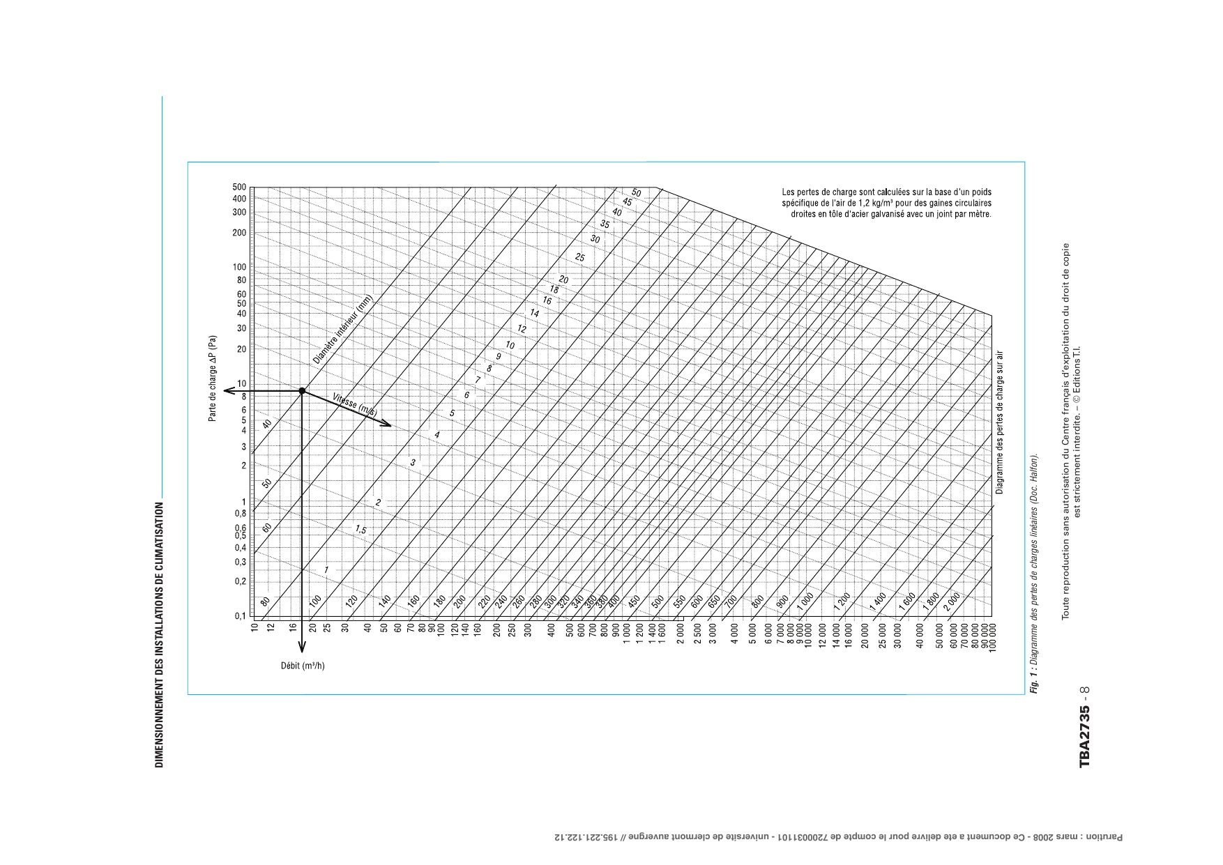 Dimensionnement des installations de climatisation - Diagramme des pertes de charge