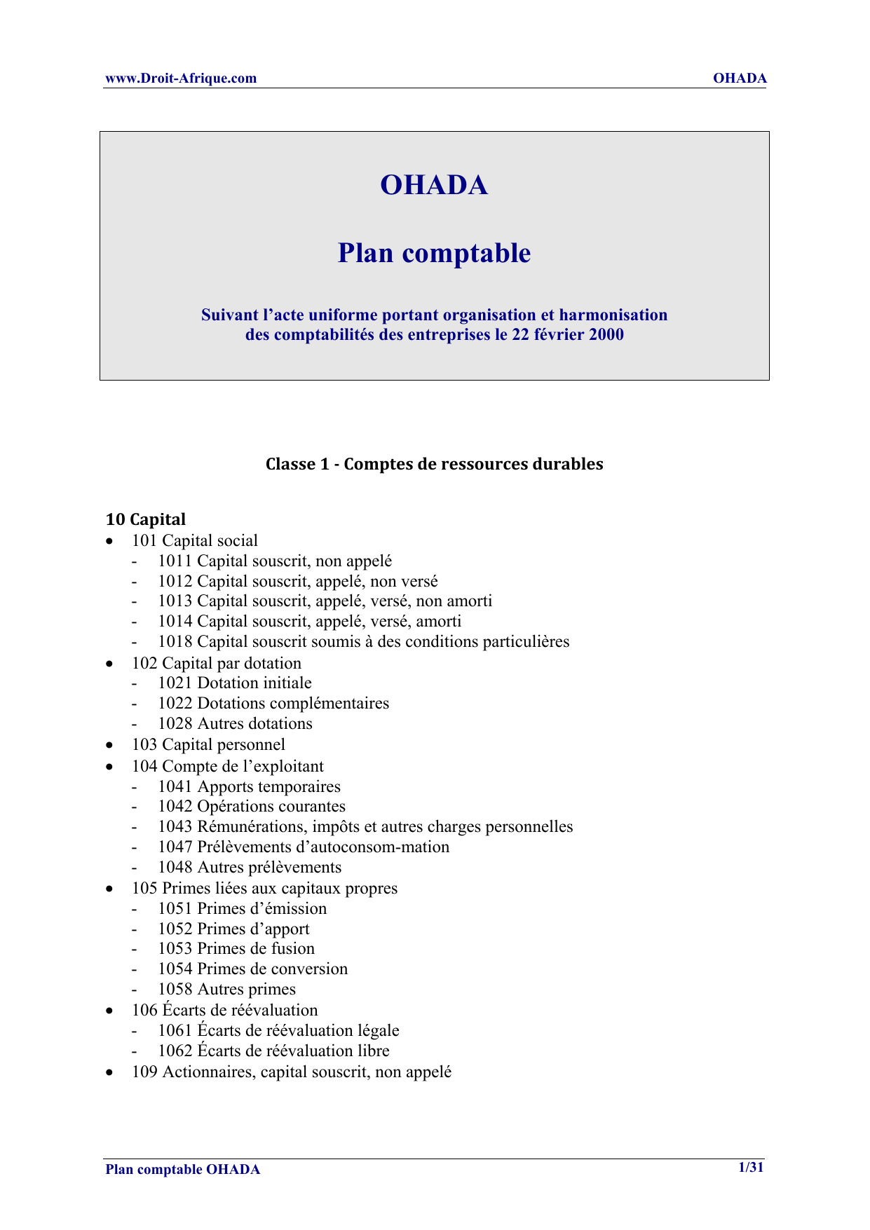 OHADA - Plan comptable OHADA (www.droit-afrique.com)