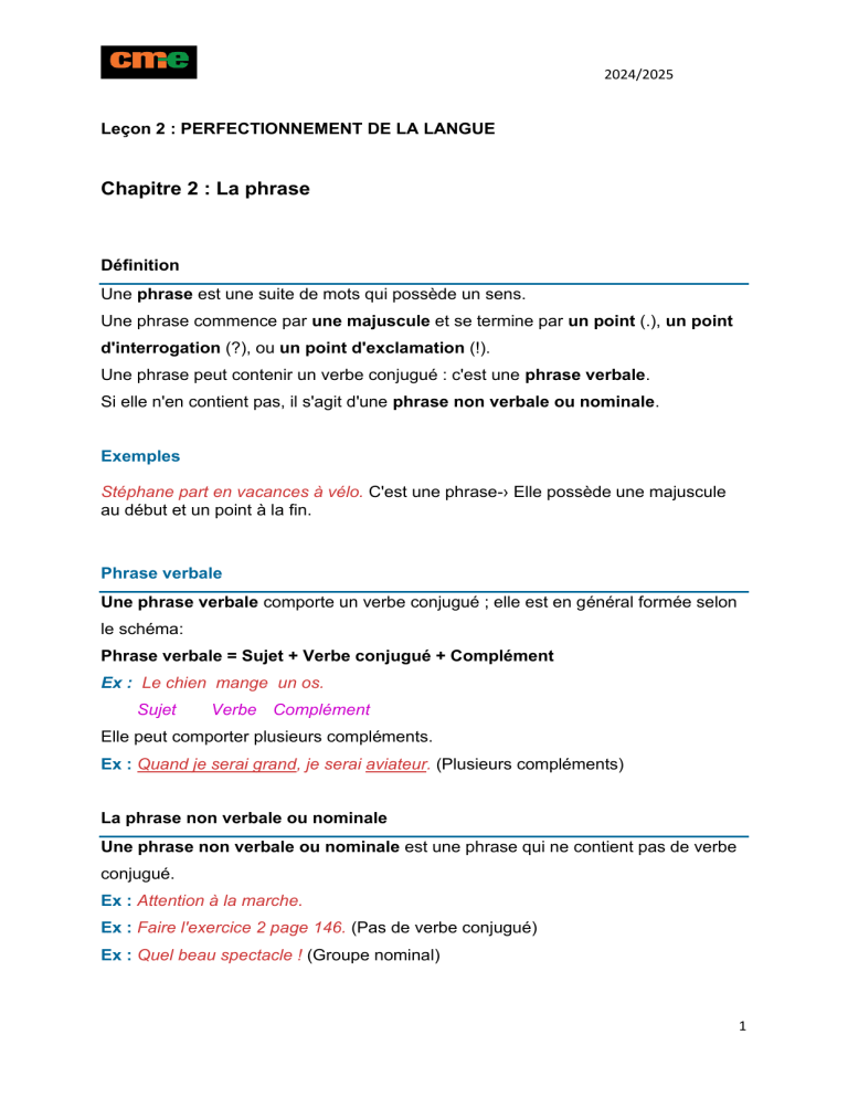 Une proposition est une phrase constituée d’un sujet et d’un groupe verbal.