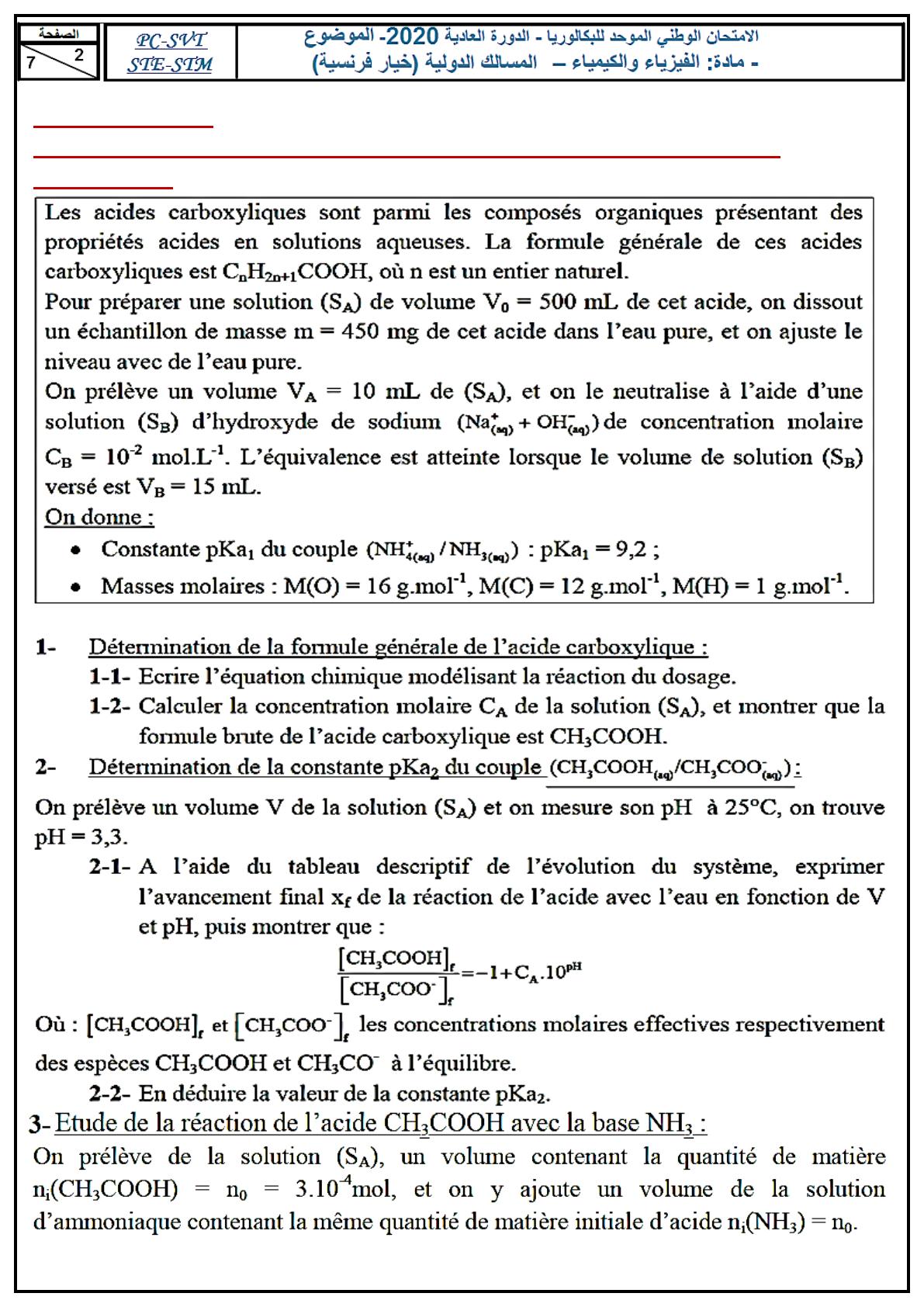 Partie 1 (4,25 points) : Réaction dun acide carboxylique avec leau puis avec