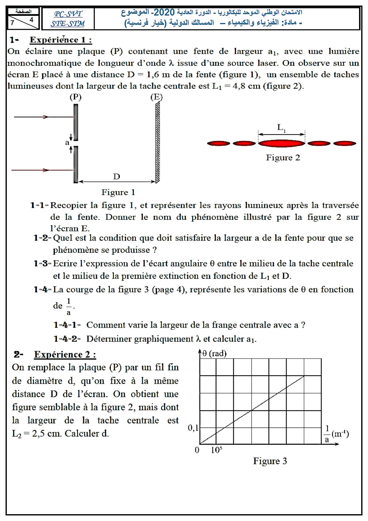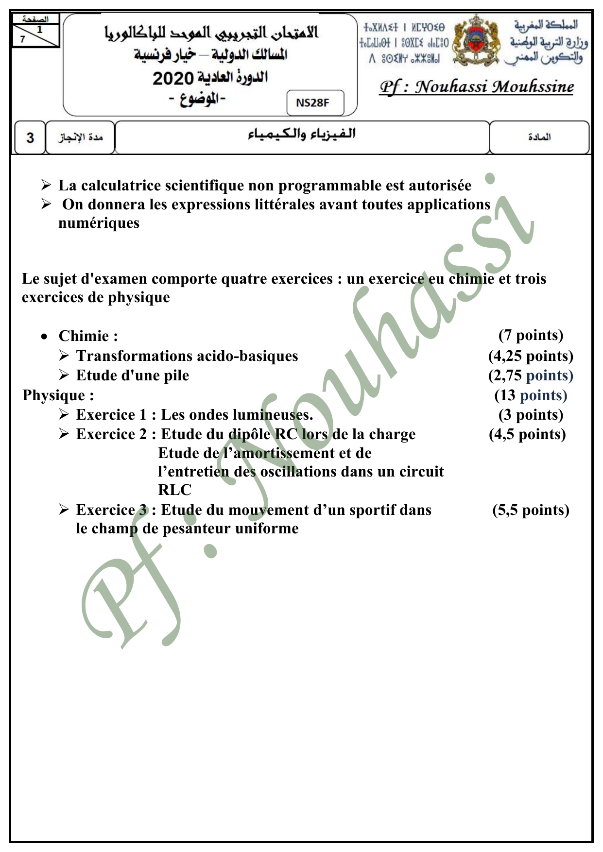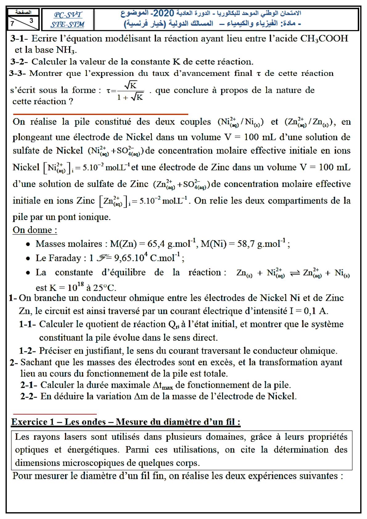 Le sujet d'examen comporte quatre exercices : un exercice eu chimie et trois