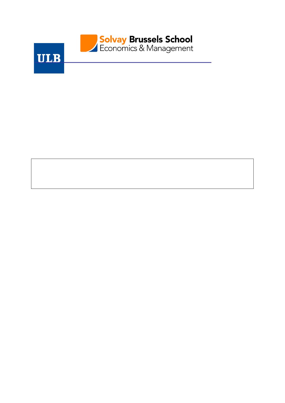 Université Libre de Bruxelles Agrégation en Sc. Economiques et de Gestion