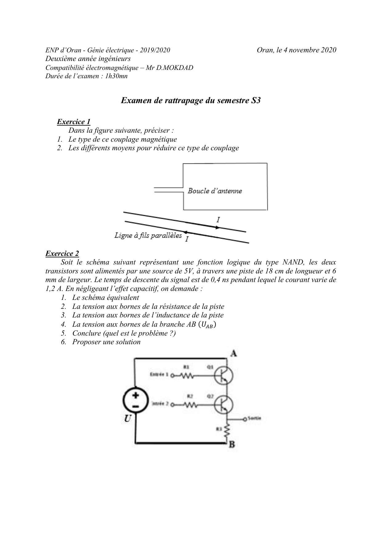 ENP d’Oran - Génie électrique - 2019/2020 Oran, le 4 novembre 2020