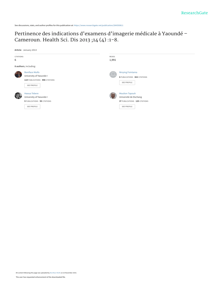 Pertinence des indications d’examens d’imagerie médicale à Yaoundé Moifo et al
