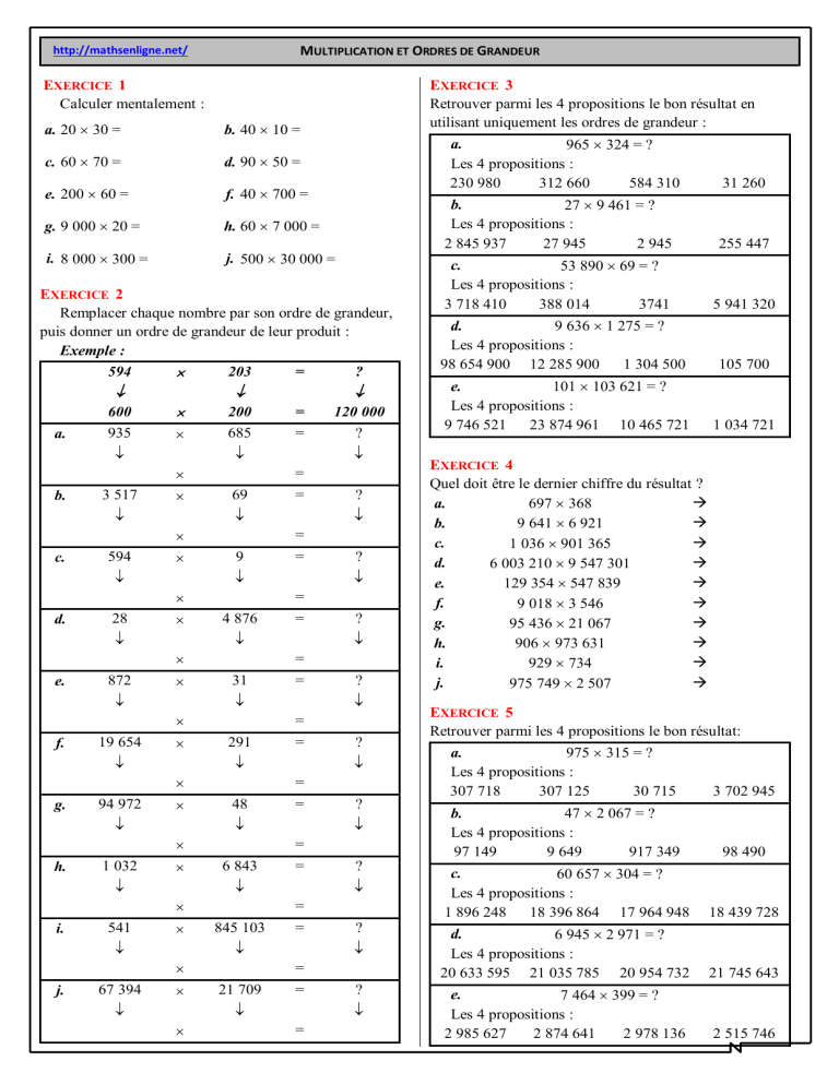 MULTIPLICATION ET ORDRES DE GRANDEUR
