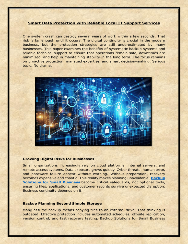 version control, and fast recovery testing. Backup Solutions for Small Business