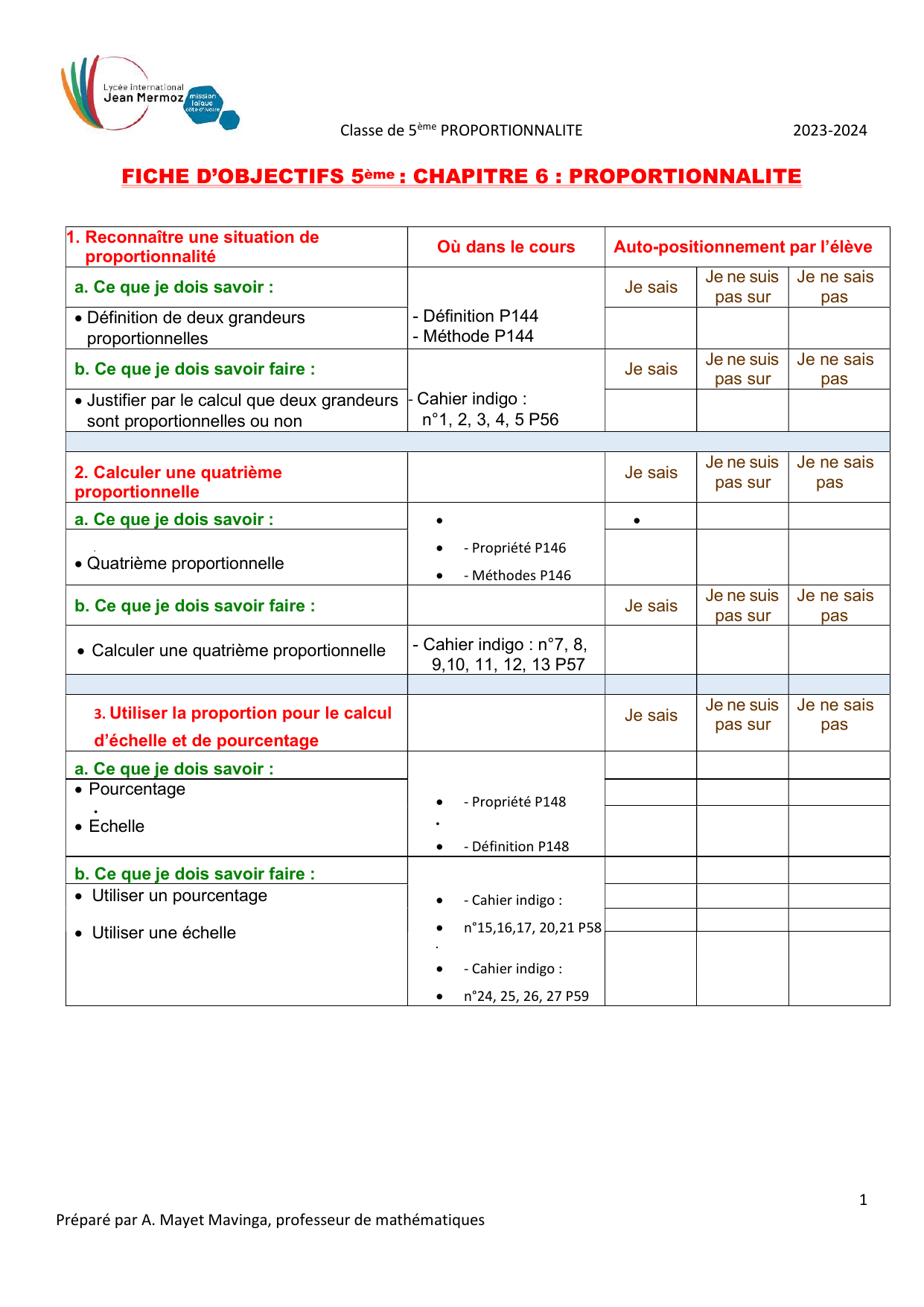 Classe de 5ème PROPORTIONNALITE 2023-2024