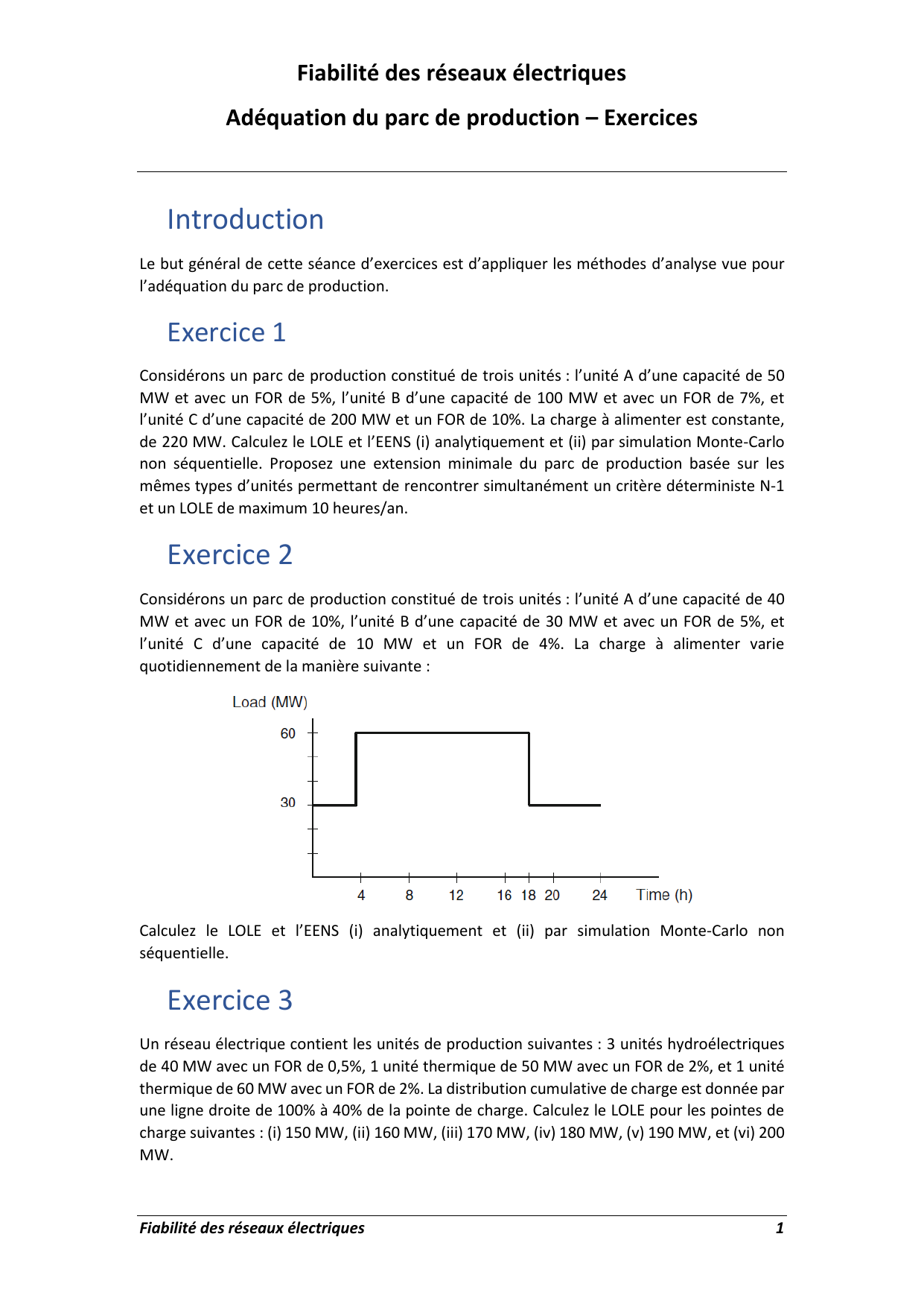 Calculez le LOLE et l’EENS (i) analytiquement et (ii) par simulation Monte-Carlo non