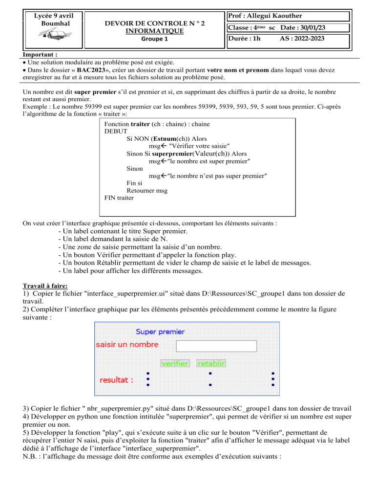 récupérer l’entier N saisi, puis d’exploiter la fonction "traiter" afin d’afficher le message adéquat via le label
