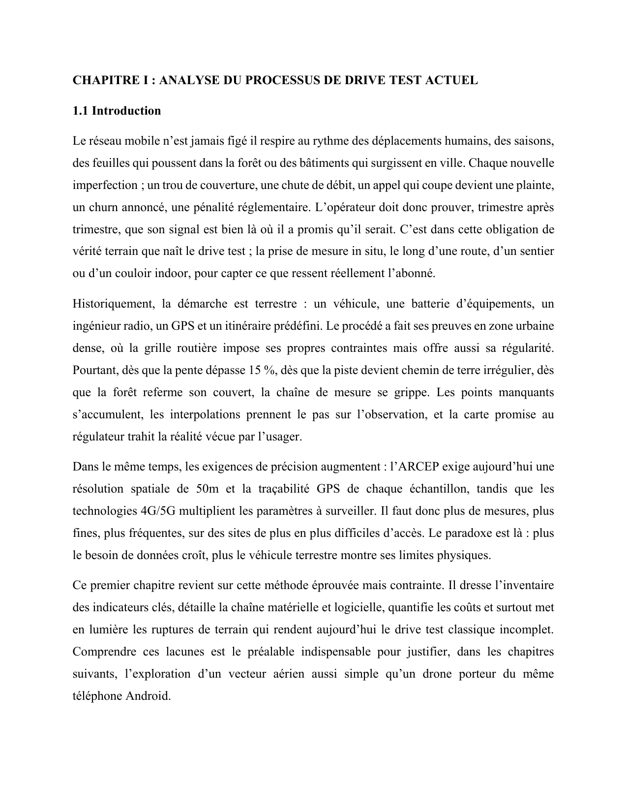 CHAPITRE I : ANALYSE DU PROCESSUS DE DRIVE TEST ACTUEL