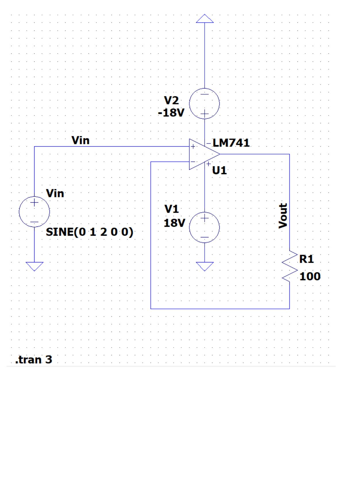 En se référant à notre cours, nous allons réaliser un amplificateur suiveur à base d'un amplificateur