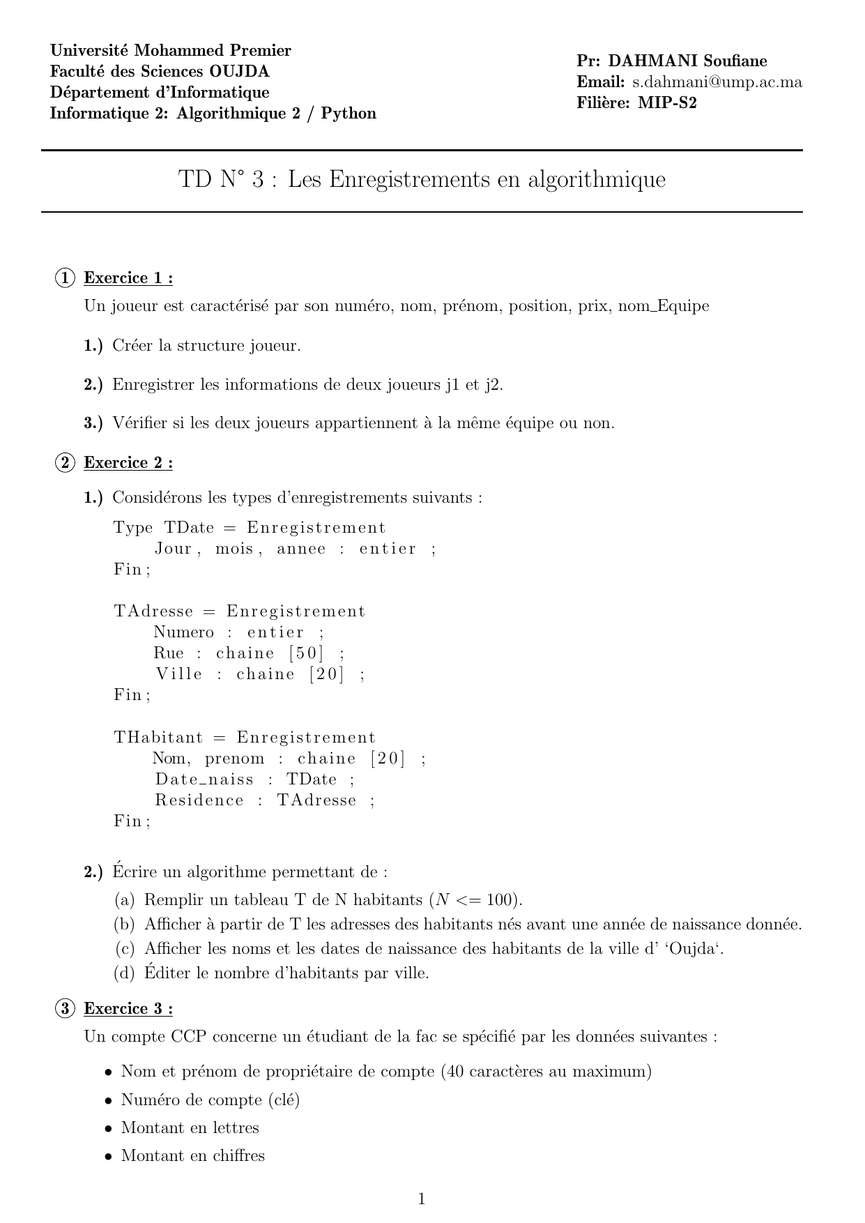 A f f i c h e r ( ”Adresse de l ’ habi tant ” , T[ i ] . Nom, ” ” , T[ i ] . Prenom , ”