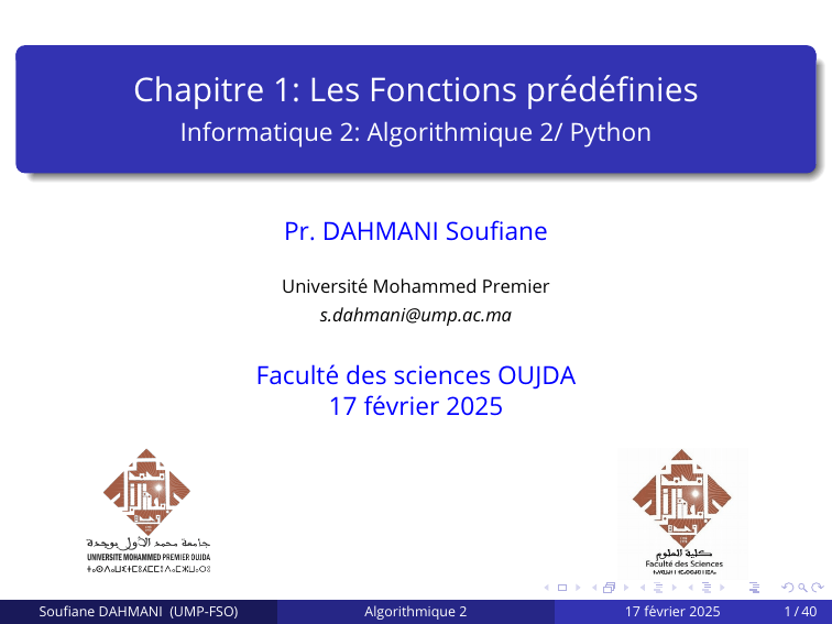 Soufiane DAHMANI (UMP-FSO) Algorithmique 2 17 f´