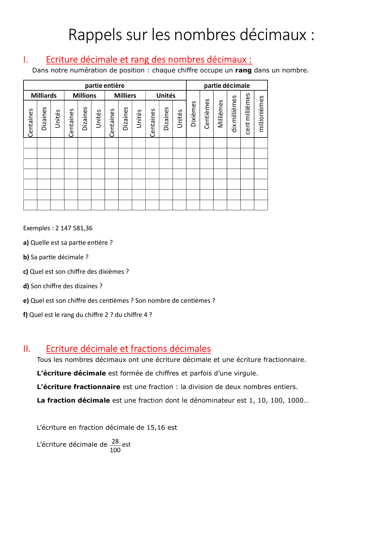 Exemple : a) 63 … 58,7 b) 95,9 … 101 ;