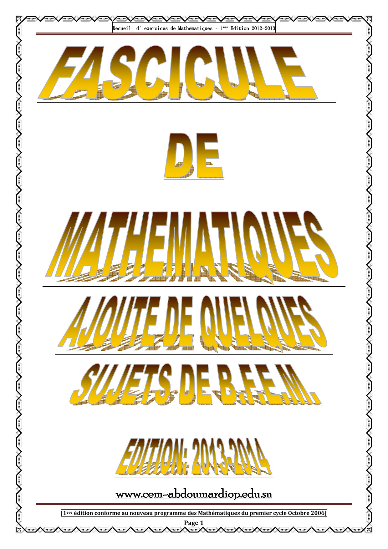 édition conforme au nouveau programme des Mathématiques du premier cycle Octobre 2006]