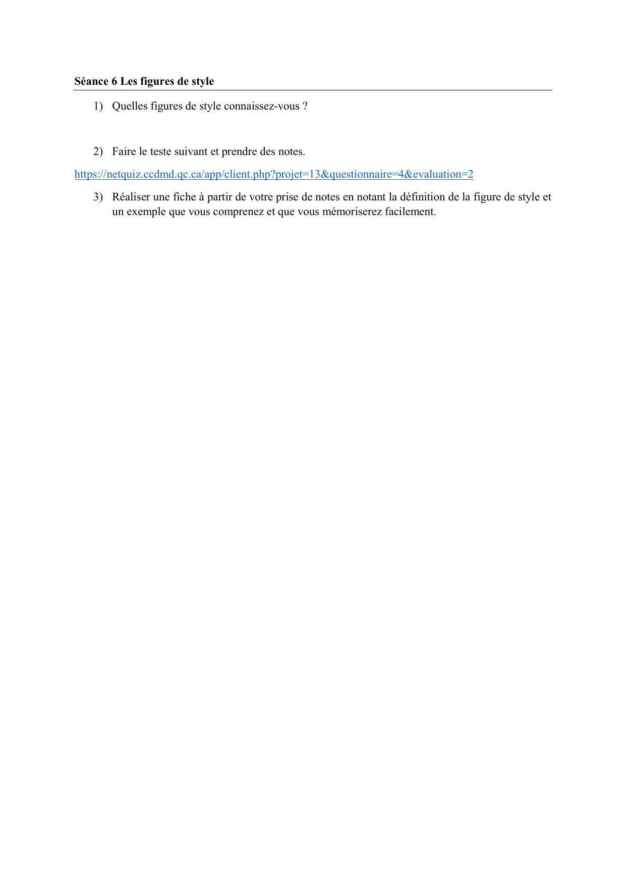 3) Réaliser une fiche à partir de votre prise de notes en notant la définition de la figure de style et