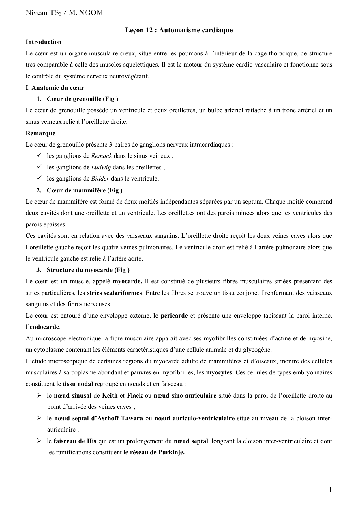 Conclusion : Le tissu nodal est le siège de l’automatisme cardiaque.