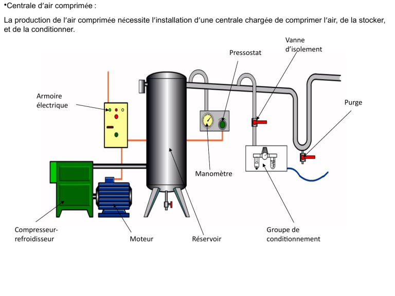 La production de lair comprime ncessite linstallation dune centrale charge de comprimer lair, de la stocker,