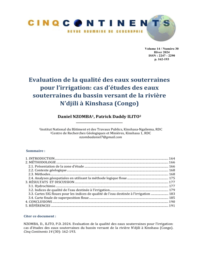 in the N'djili river basin in Kinshasa (Congo). This study aims to identify