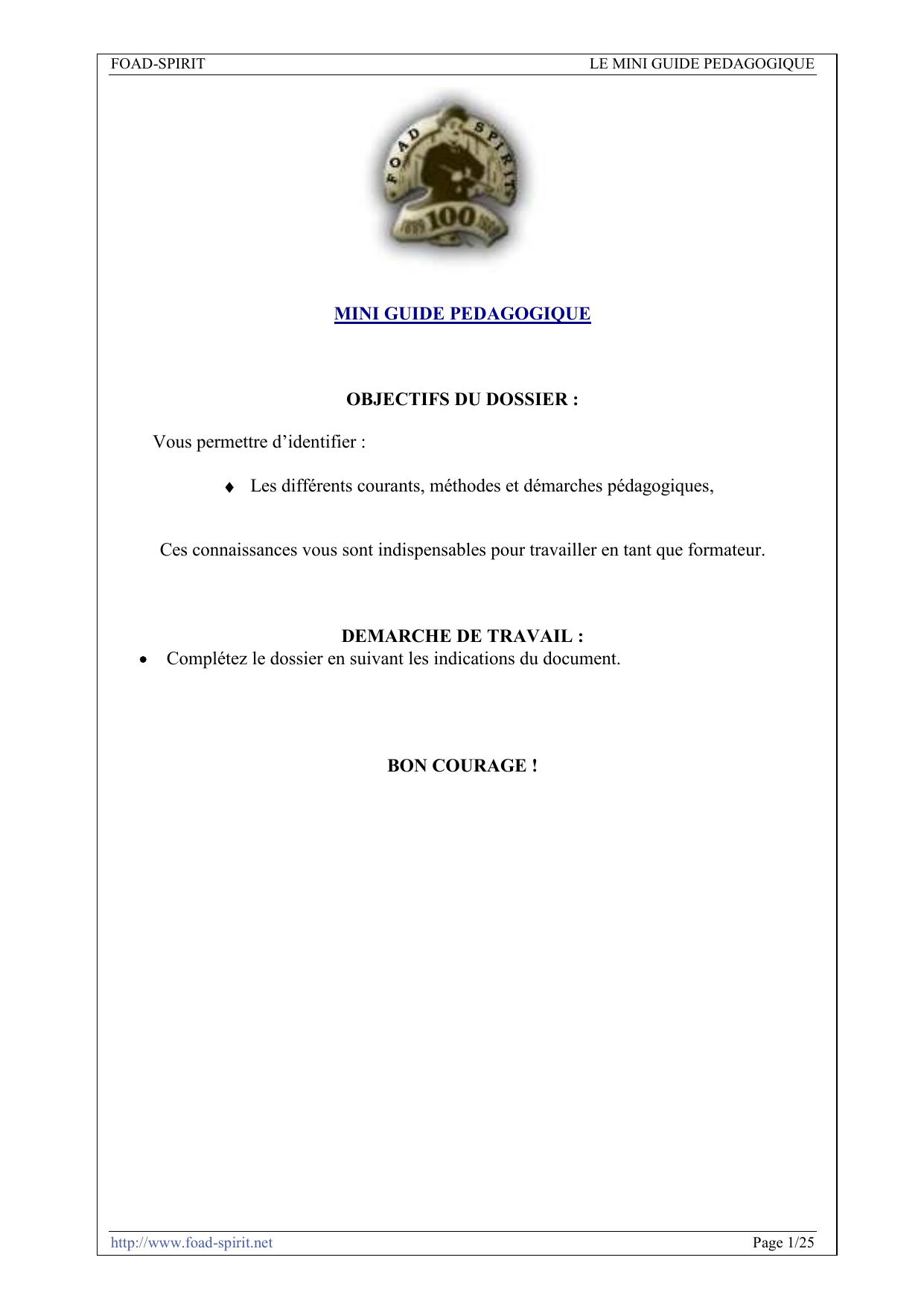 FOAD-SPIRIT LE MINI GUIDE PEDAGOGIQUE
