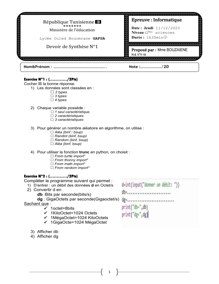Donner la trace d’exécution ainsi que les valeurs finales de A, B, C et D après l’exécution des