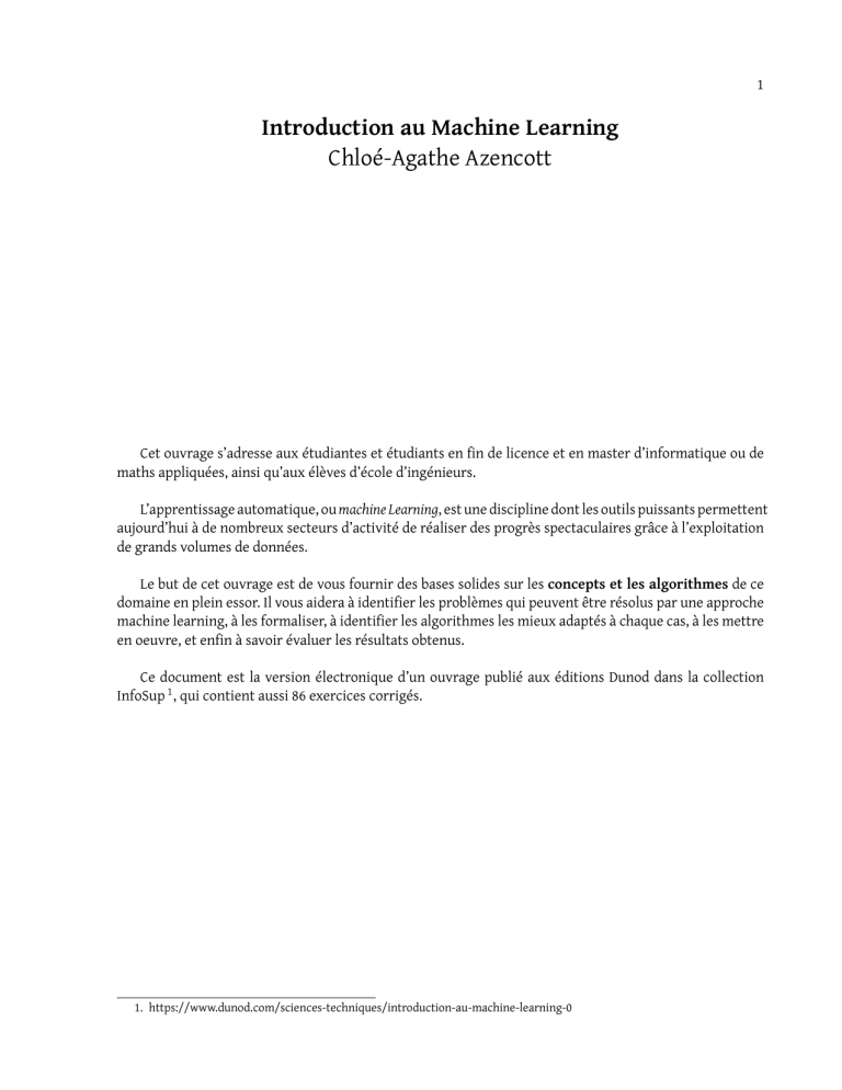 prentissage supervisé paramétriques (chapitre 5). Le chapitre 6 présente les variantes régularisées de ces