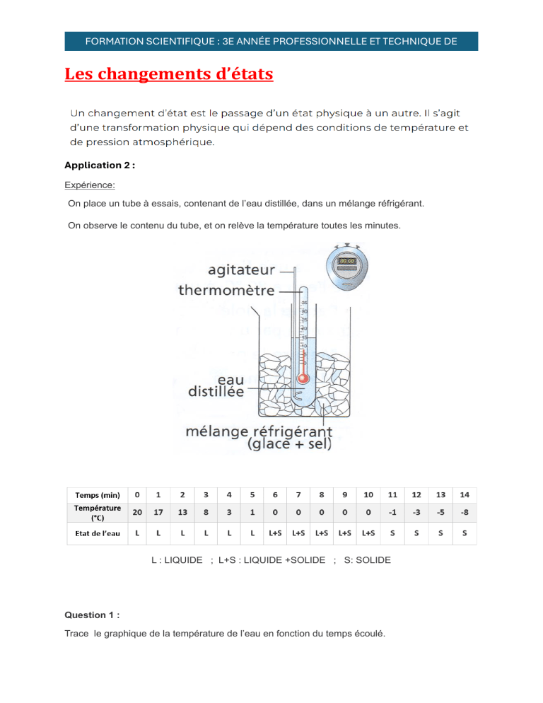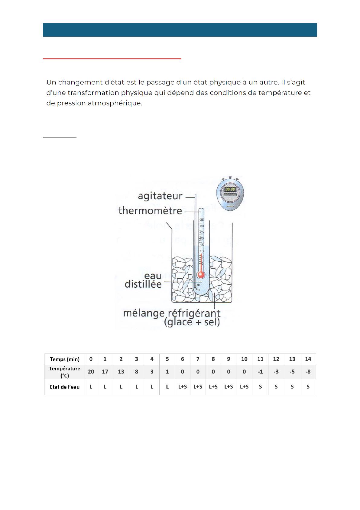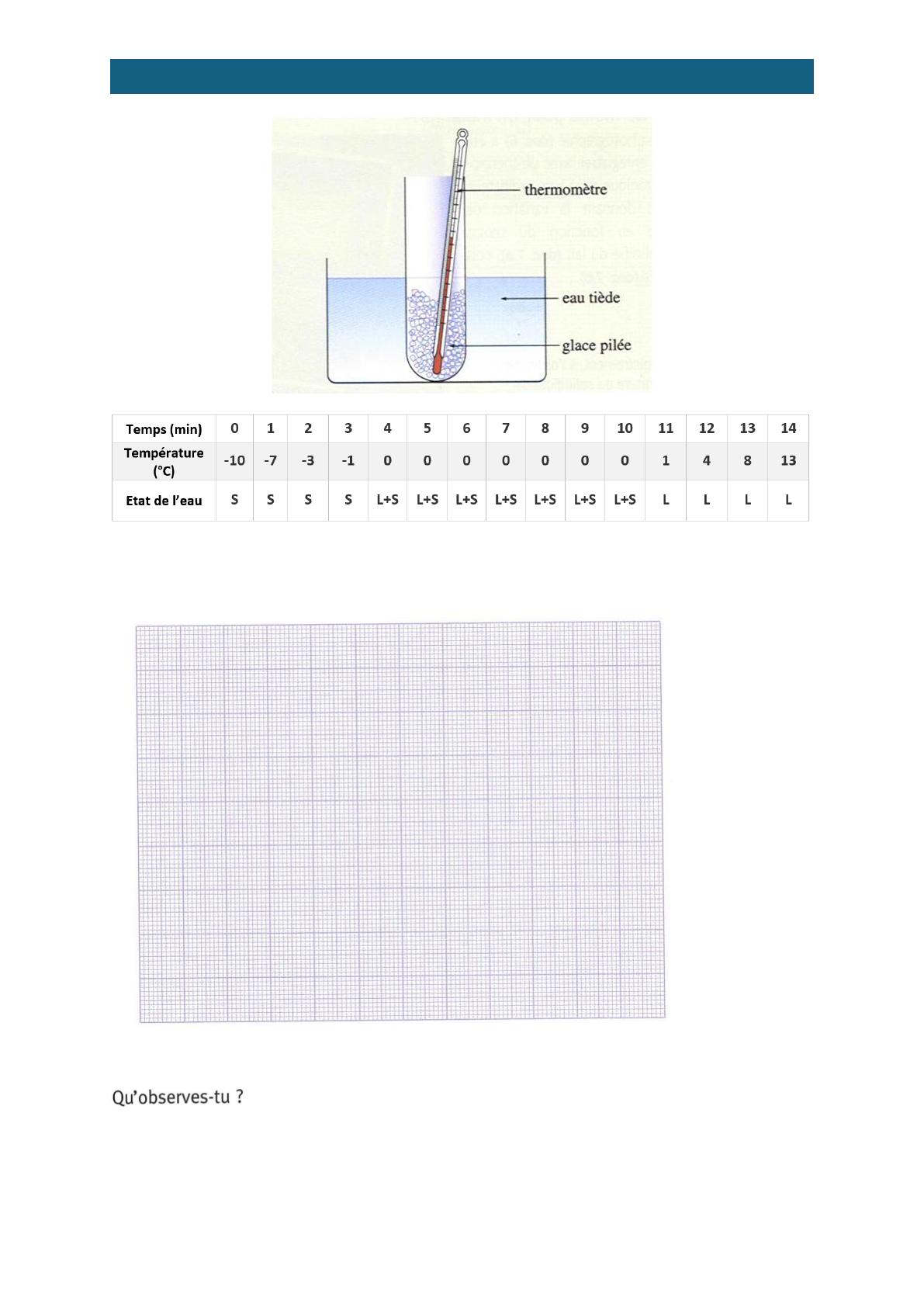 On observe le contenu du tube, et on relève la température toutes les minutes.