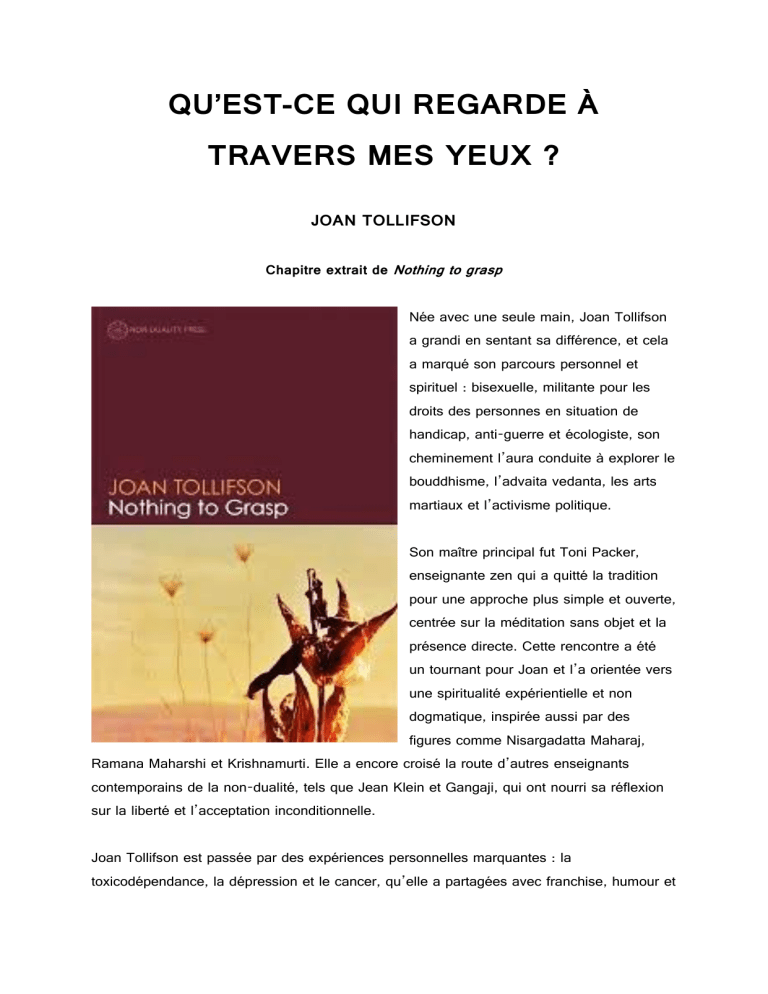 la souffrance, et à découvrir la liberté dans l’acceptation de ce qui est, ici et maintenant. Via