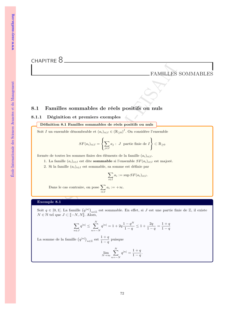 École Internationale des Sciences Avancées et du Management www.easy-maths.org